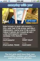 Fantasize about having a real, deep relationship. Experiment, and see what it’s like to really be in love with these cute girls - Seri, Ayumi, Nina, Larisa, Melanie, Sachi, Kai, Sato and Karin. The new guys are really special, they are sexy and handsome, you have to meet John and Akio, so cute and fun, they love to ask questions, so be ready! Learn the best way to text message a girl and boy you like. See what it’s like to get messages from someone you really care about. It’s a fun way to build a relationship and personal love experience.