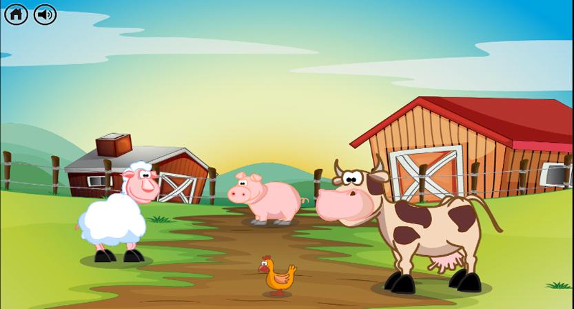 The game consists of matching the animals with their respective sounds, thus hearing a muuuuuuu will only have to click on the cow and thus with all the sounds.