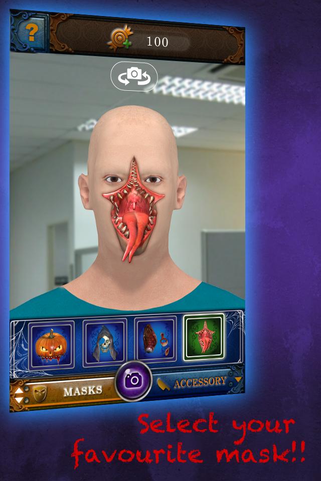 Now can decorate as a pumpkin-man, Vampire or Frankenstein through the face tracking system by using “Face Off” Halloween version.