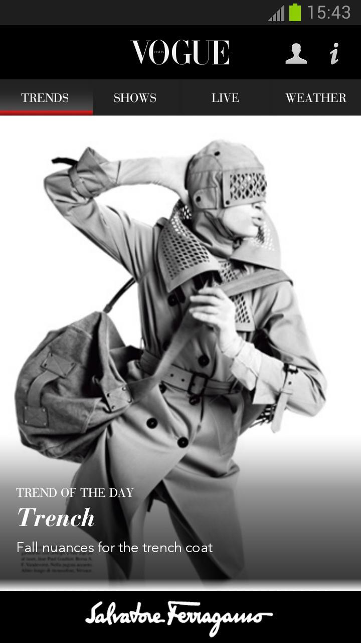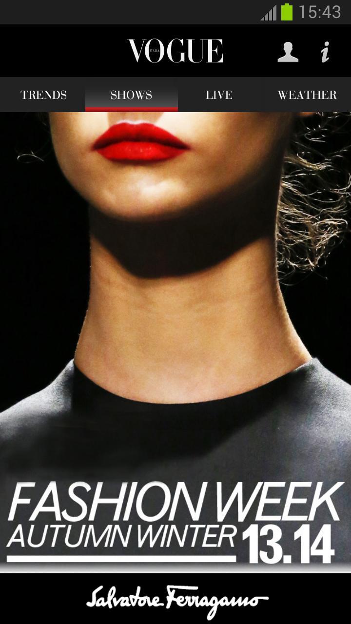 Conceived to experience the intensity of the catwalks of the greatest brands is the third section of the app, live, which presents the streaming of the fashion shows. Starting from those of the FW13-14, the videos will be organized chronologically in an archive in progress, available for free consultation.