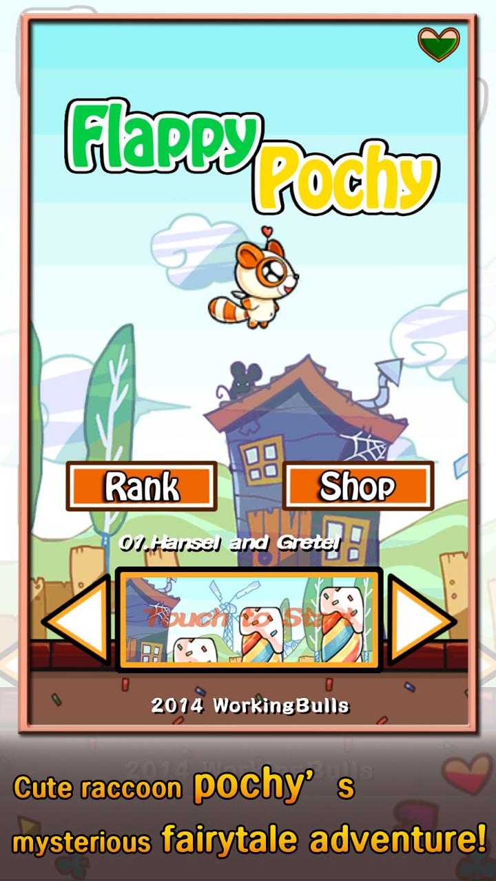 Cute raccoon pochy’s mysterious fairytale adventure!Let’s start! Flappy Pochy!