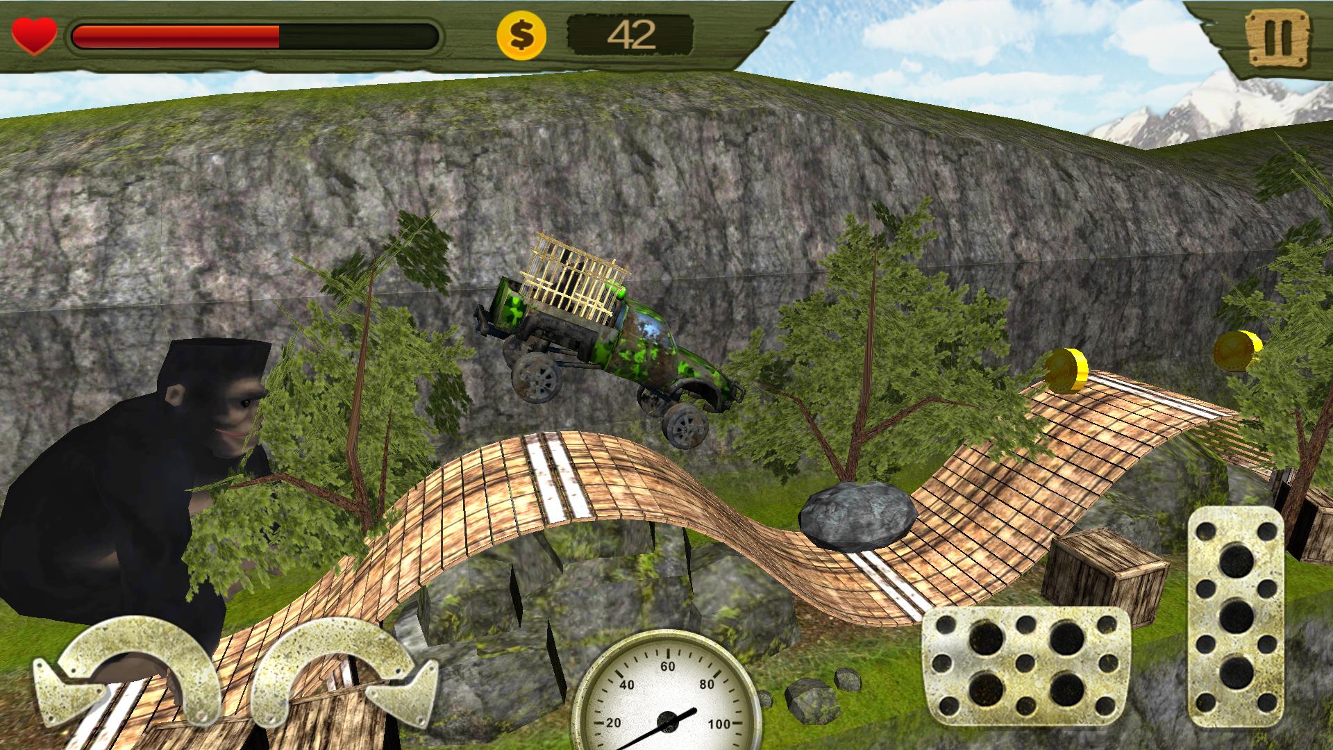 Comment jouer: utilisez la pédale gazeuse et les freins pour provoquer vos soins. Votre objectif est de conduire le plus prudent que possible - ne laissez pas Gorilla vous rattraper et ne perdez pas votre trophée - l'enfant de Gorilla! Montez sur toutes les collines, traversez tous les niveaux et collectez des points.
