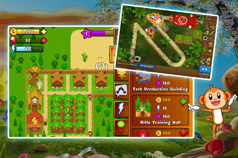 Ce jeu permet de créer, de mettre à niveau et de personnaliser votre propre Balloon Monkey in the city dans ce mélange révolutionnaire de bâtiments de la ville et de grande défense de la ville. Attaquez un territoire infesté de Bloon adjacent à votre ville, remportez un jeu de défense courte. Les bâtiments sont le cœur de votre ville, et chacun a un objectif spécifique - des tours de singes individuelles pour la bataille, des mises à niveau pour ces tours de votre économie, le pouvoir de suralimenter votre ville.