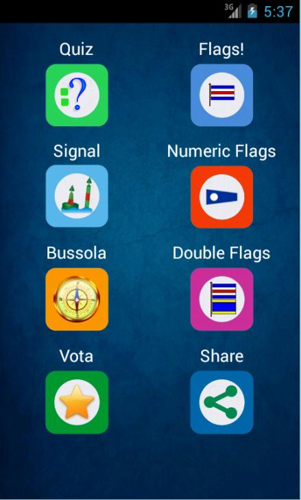 En plus de contenir différents menus, l'application avec la possibilité d'étudier et d'avoir tous les Bandiere nautiche et les signaux nautiques à portée de main, permet à un simple jeu de quiz pour les stocker facilement.