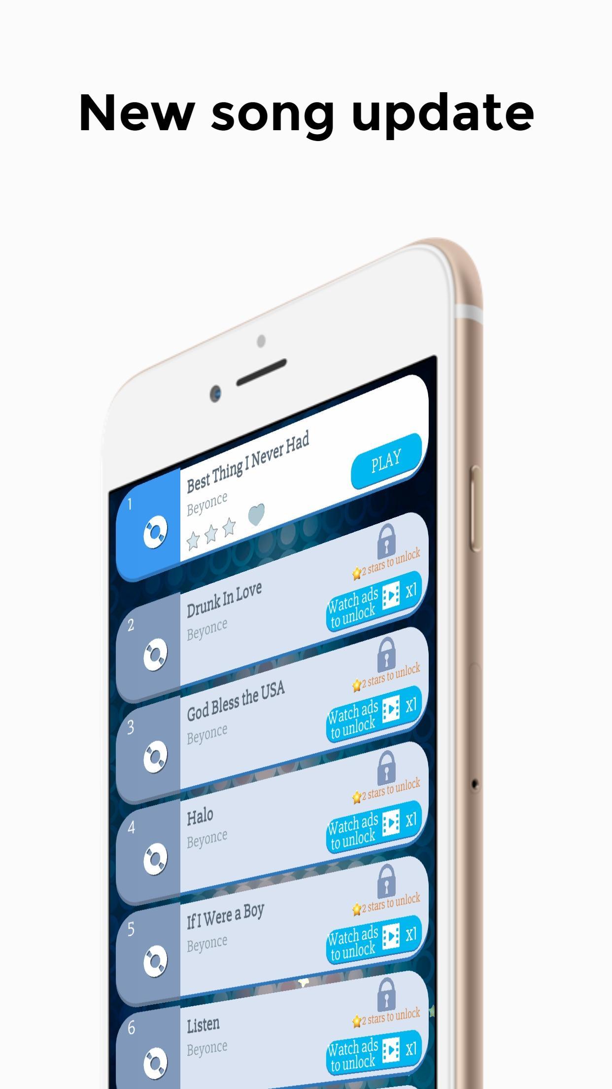 Le jeu Beyonce Piano Game est apparu dans le jeu de piano avec exactement des beats de chansons de Beyonce. Appuyez sur pour sélectionner et sentir la musique