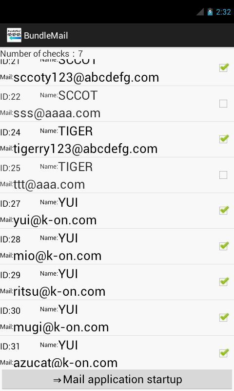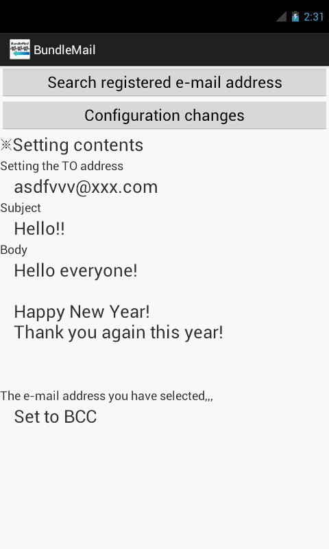 ※ Mail Sujet de l'adresse e-mail et sélectionnez le passe-partout, le corps est dans cette application