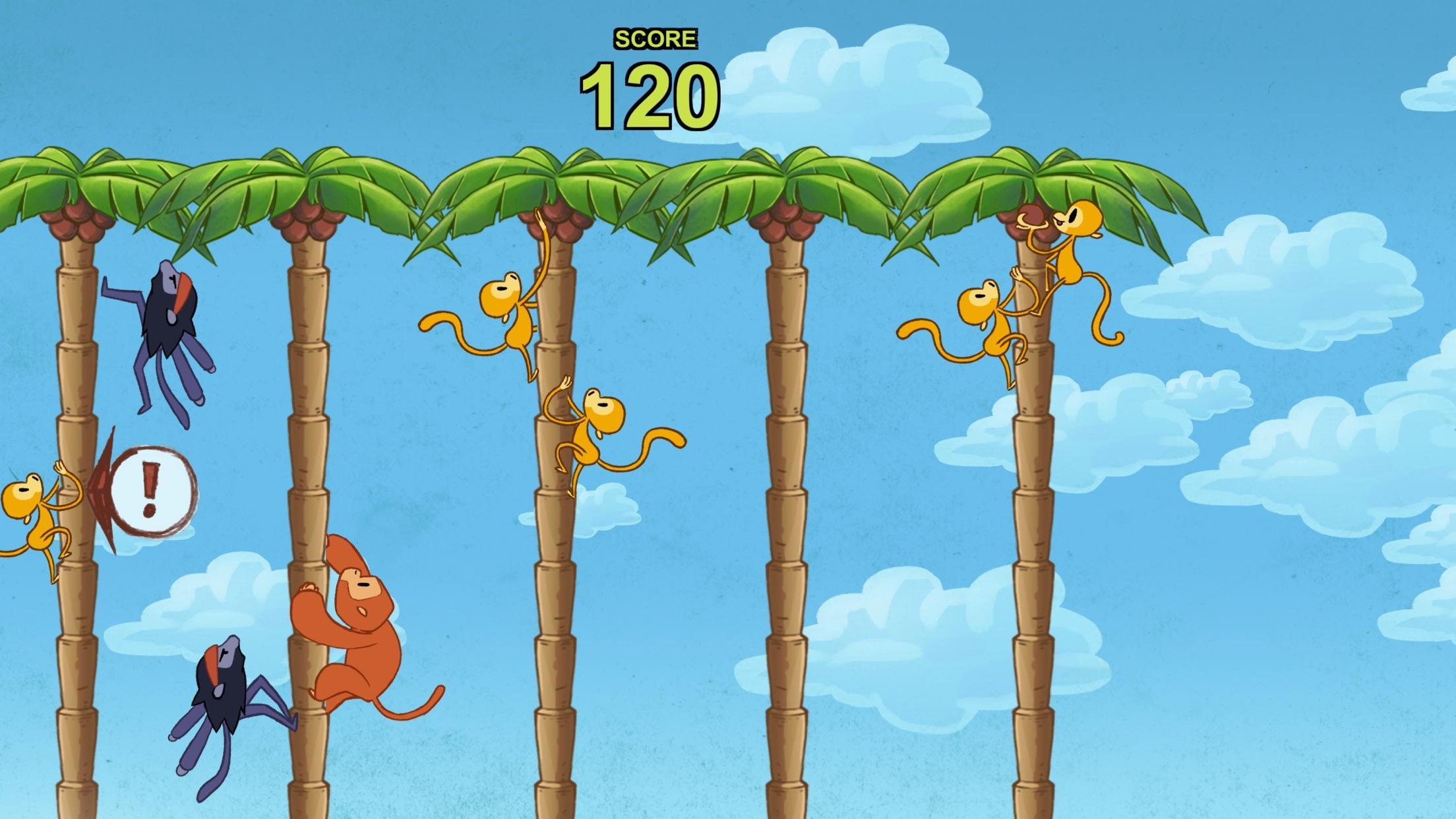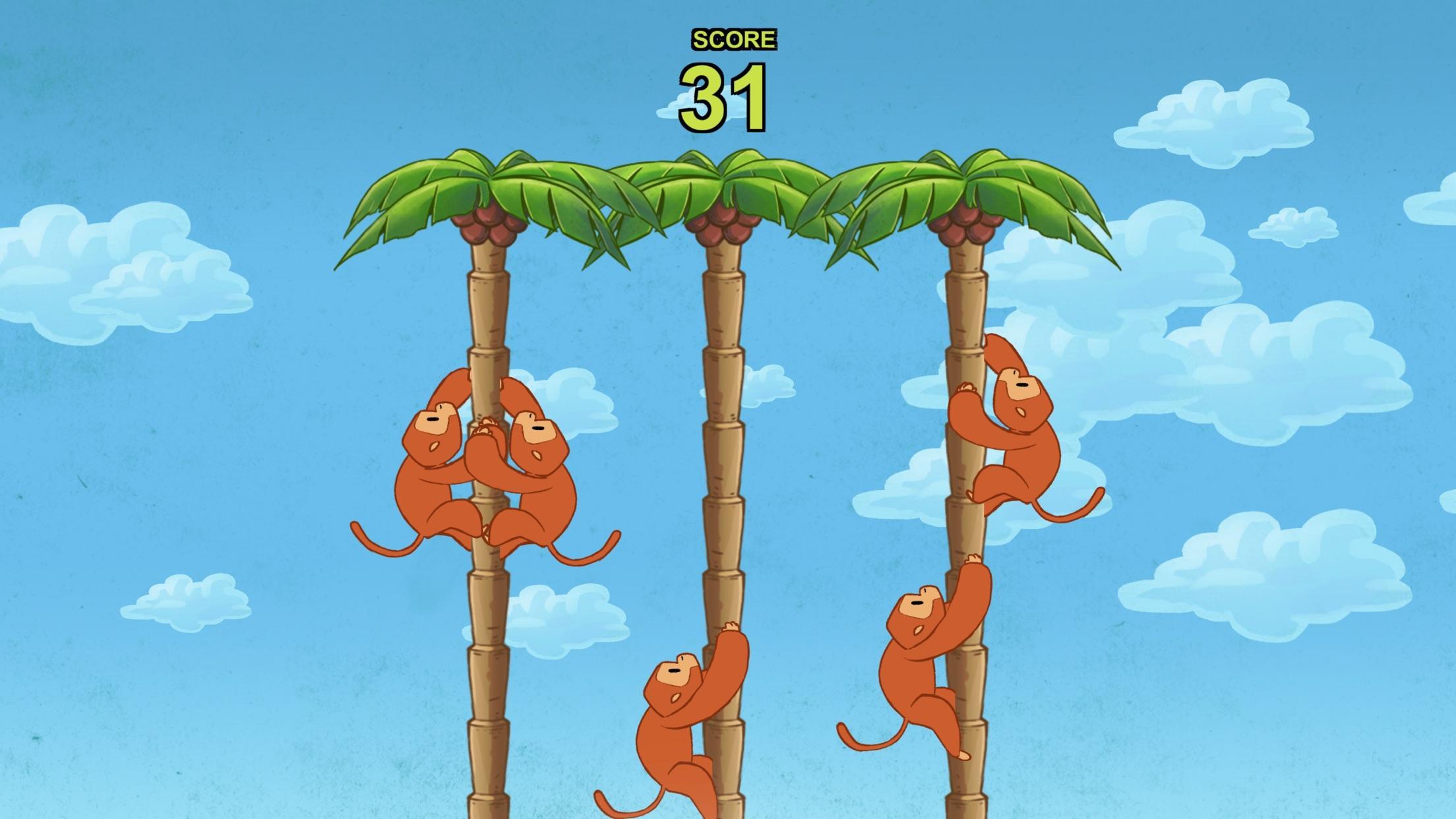 - Appuyez simplement sur l'arbre pour laisser tomber vos noix de coco et frappez les singes