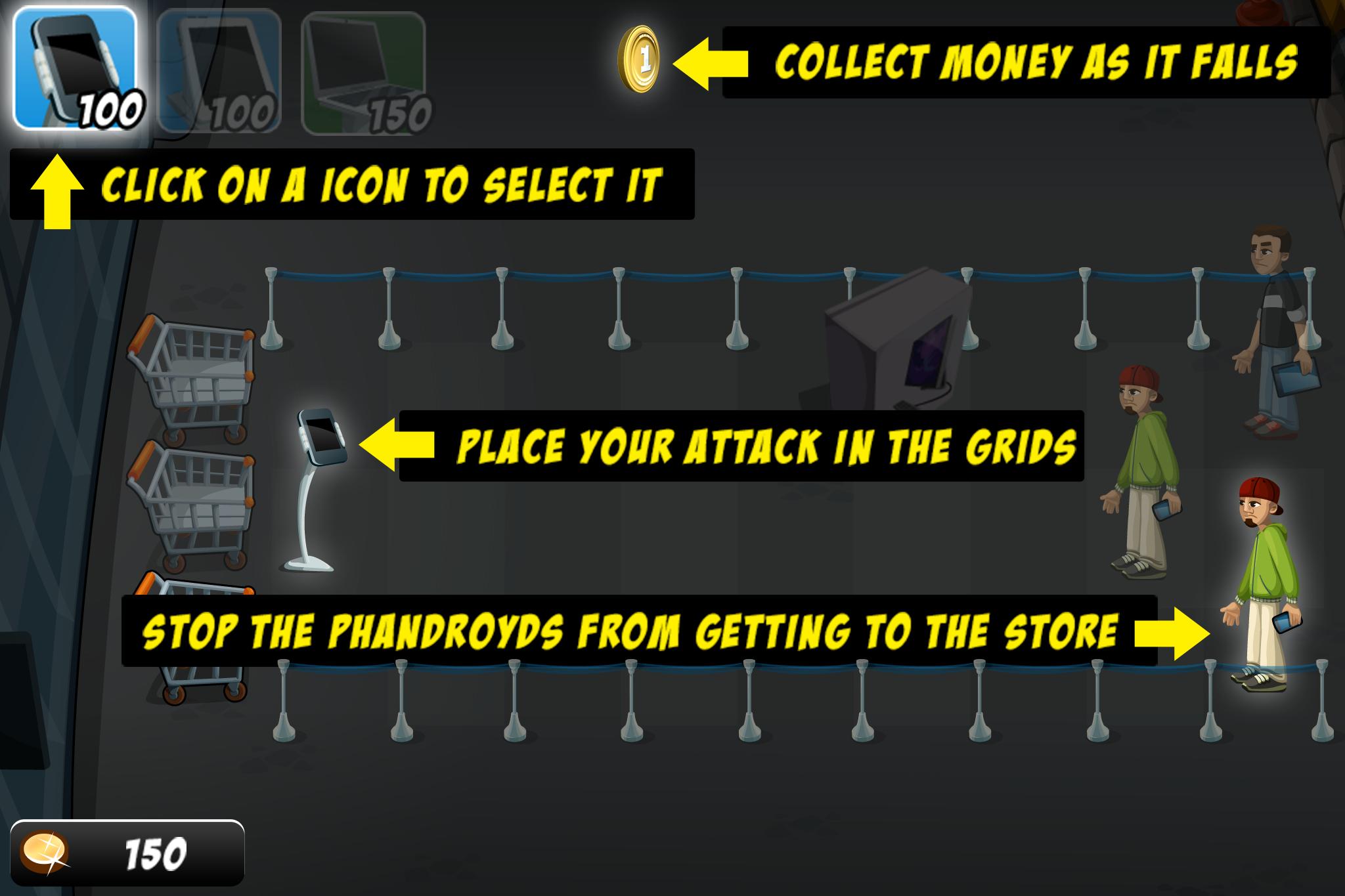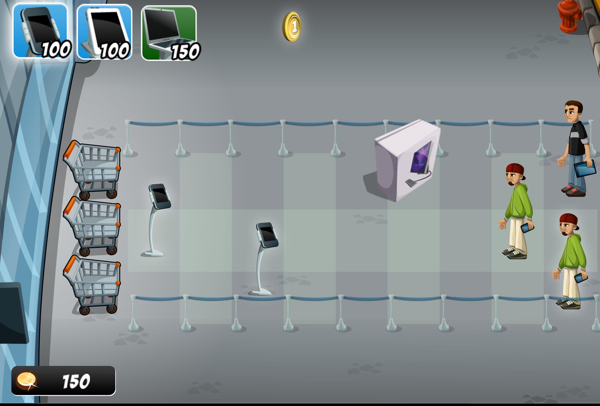 Faites un tour du côté des Fanboys pour une fois et défendez les magasins, alors qu'ils attaquent à la première lumière lorsque le magasin s'ouvre, combattez-les en utilisant certains des plus grands gadgets que vous avez à remettre et renvoyez-les à la maison pour réfléchir à leur attaque. Créez vos propres magasins d'applications, pour aider à générer plus d'argent pour faire le plein des derniers gadgets.