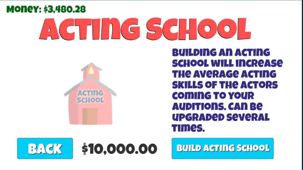 -Upgrader votre école d'actrice jusqu'à 5 fois pour obtenir des acteurs plus qualifiés!
