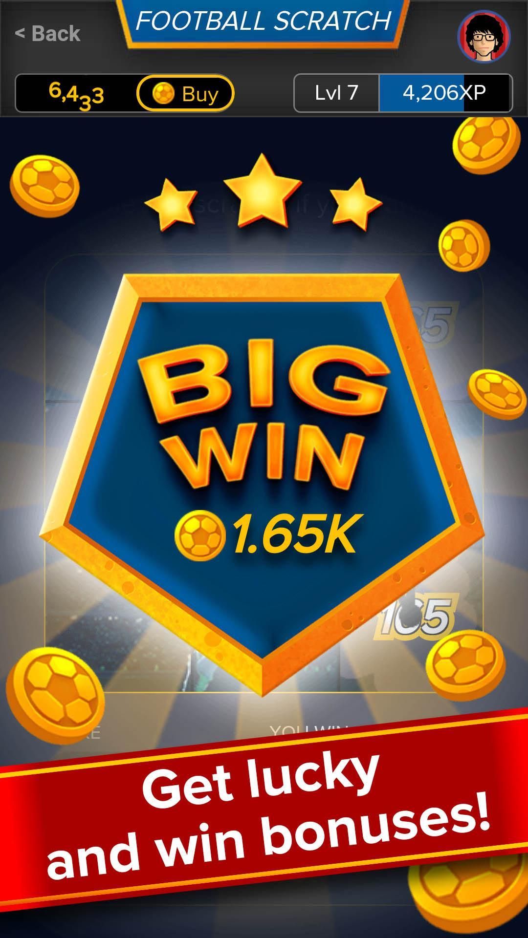 Amusant et facile à jouer à un jeu à gratter où les fans de football se grattent des cartes et gagnent des pièces!