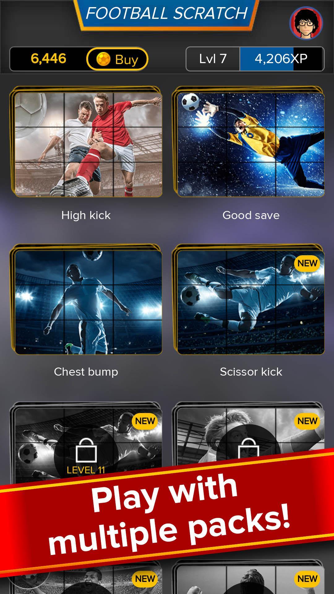 Avancez à travers des dizaines de packs de cartes, chacun de différentes images de football haute résolution.