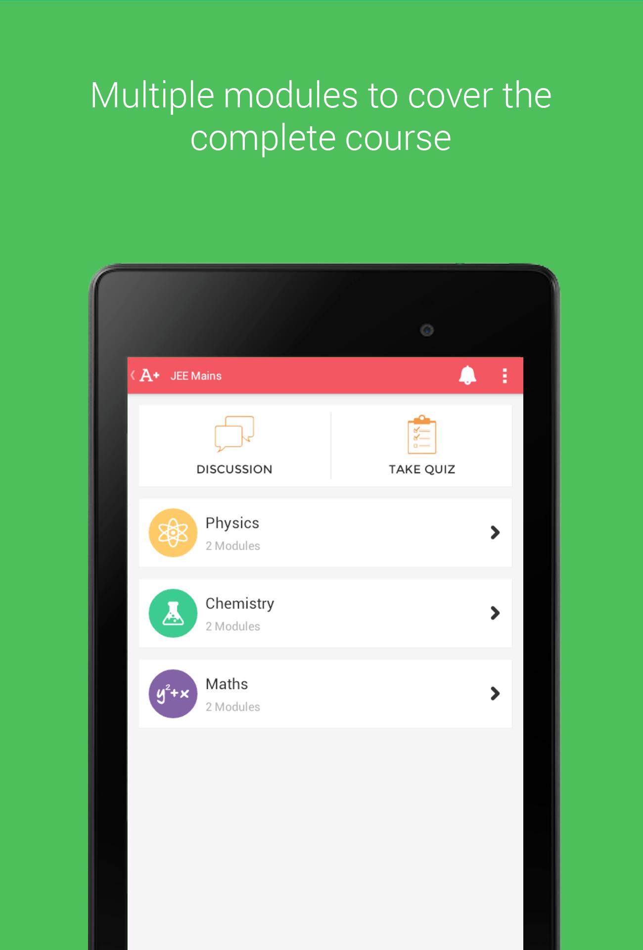 Les cours de préparation JEE Main et Advanced (Indian Institute of Technology Entrance Exam) comprennent plus de 2500 questions de pratique ainsi que leurs réponses et leurs solutions détaillées. Les questions de pratique couvrent tous les sujets présents dans le programme de JEE Advanced (auparavant connu sous le nom de IIT JEE) et Jee Main (auparavant connu sous le nom d'AIEEE).