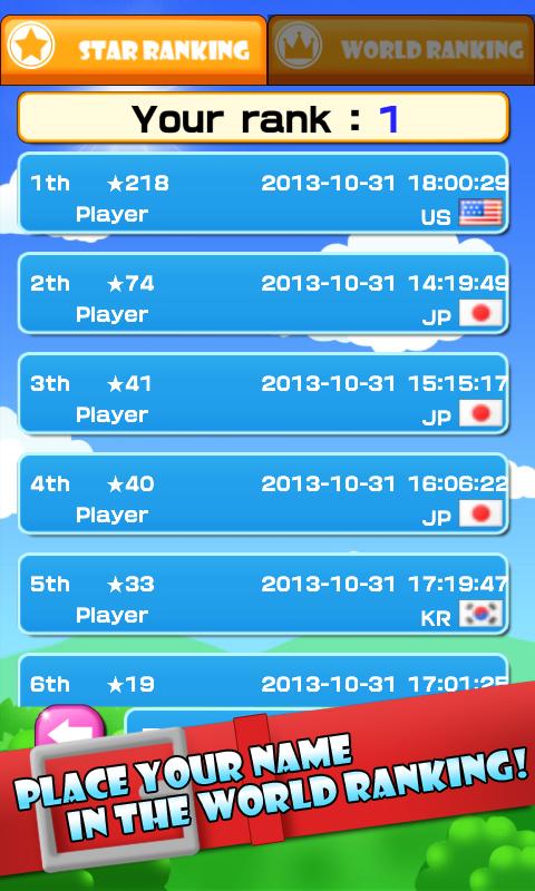 Le jeu a un classement mondial. Jouez et mettez votre nom sur le classement mondial!