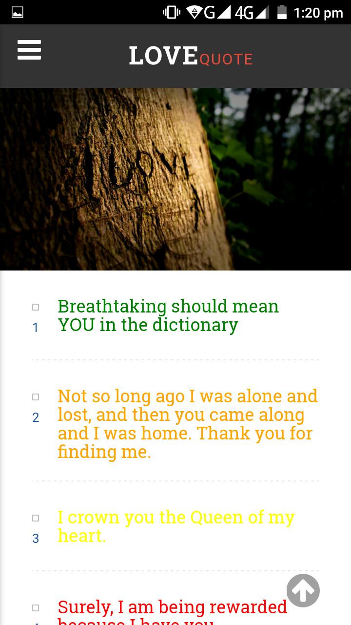 Cette application simple contient un ensemble de citations qui expriment l'amour romantique car il contient un ensemble de différentes définitions de l'amour et une application simple pour calculer la proportion d'amour avec votre partenaire.