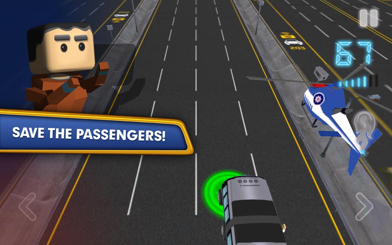 Le bus est truqué d'une bombe et vous devez sauver les passagers! Gardez votre vitesse supérieure à 50 km / h, parcourez une route pleine de pièges et sauvez les passagers lorsque la police se présente.
