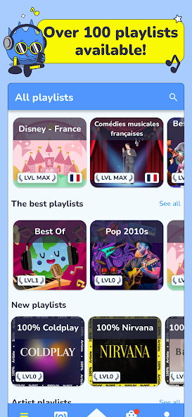 - des milliers de listes de lecture? : Avec Mukiz , vous avez le choix entre des milliers de listes de lecture avec qui jouer! De la musique de cinéma à Disney, nous avons même 7 genres de musique à choisir: Pop, Rock, Metal, Rap, R&B, Electro et même Country! Déverrouillez les listes de lecture avec des pièces et rivalisez avec des amis pour découvrir qui a les meilleures connaissances musicales.