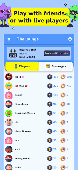 - Jeux en direct? : Tous les jours rejoignent des centaines de personnes dans des dizaines de jeux en direct. Plusieurs fois par jour, vous pouvez rivaliser avec d'autres joueurs pour découvrir qui est le meilleur amateur de musique.