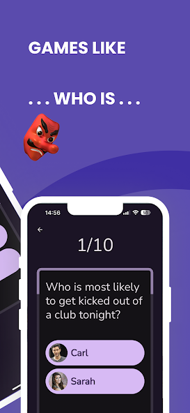 Le mode de jeu classique a été inspiré par la consommation de jeux dans le style de la vérité ou de l'ose, de rassembler vos amis et de laisser le plaisir commencer! L'application présente des questions amusantes et sales similaires à ce que vous avez plutôt comme "qui a la maman la plus chaude du groupe?" ou "qui est le plus susceptible de séduire en public?" Les participants peuvent voter, révélant la décision du groupe de manière hilarante et parfois embarrassante. À chaque vote, l'application devient un catalyseur pour exposer des secrets et dévoiler des vérités cachées entre amis, ce qui en fait un jeu adulte extrêmement amusant. Atteignez-vous pour une nuit remplie de rires, de surprises et un lien plus étroit avec votre équipe de fête.