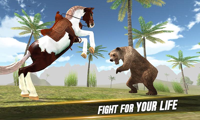 Simulateur de survie à cheval. Attaquez et battant les animaux sauvages comme un étalon en colère