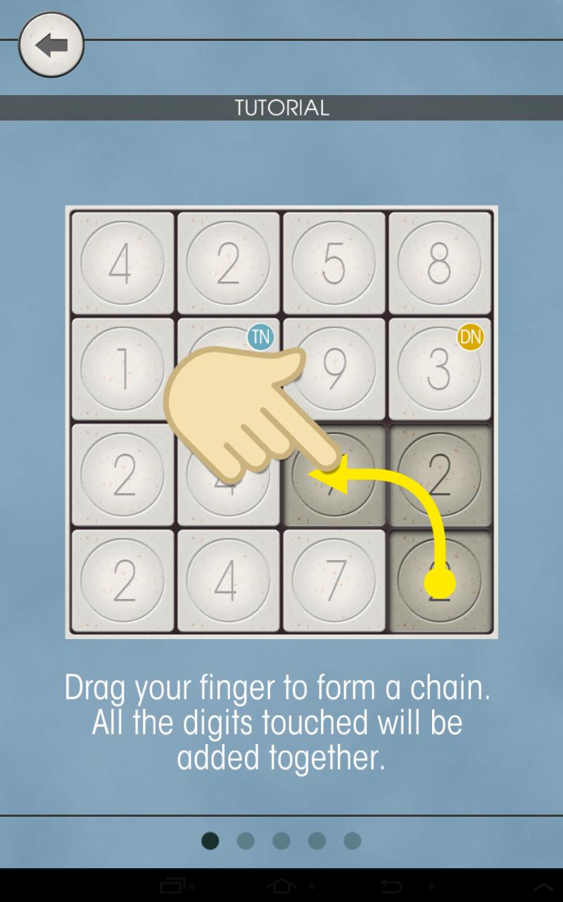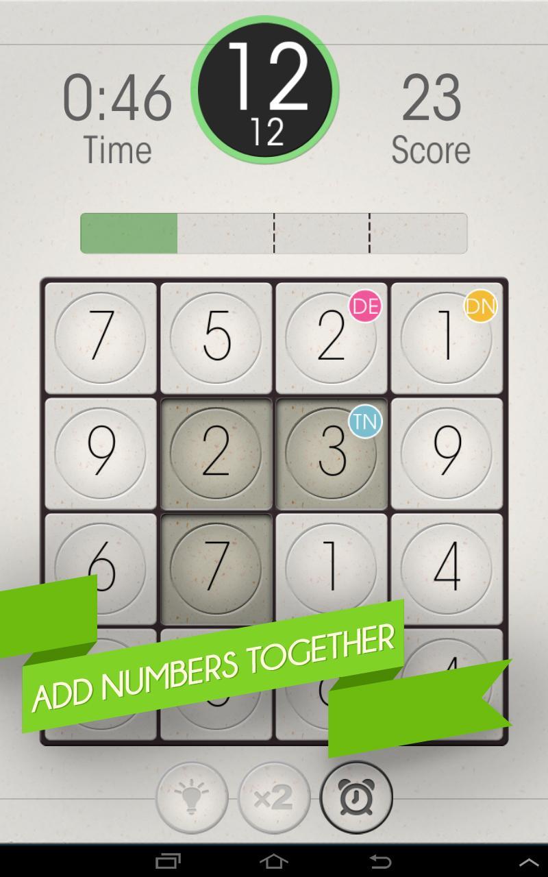 You just have to reach the given Target Number, swiping your finger on the screen to add up digits. Each time you get it, a new one will appear, and so on. Try to make the as many sums as you can and take advantage of bonuses to get more points: at the end of the third round the player with the highest score will be the winner!