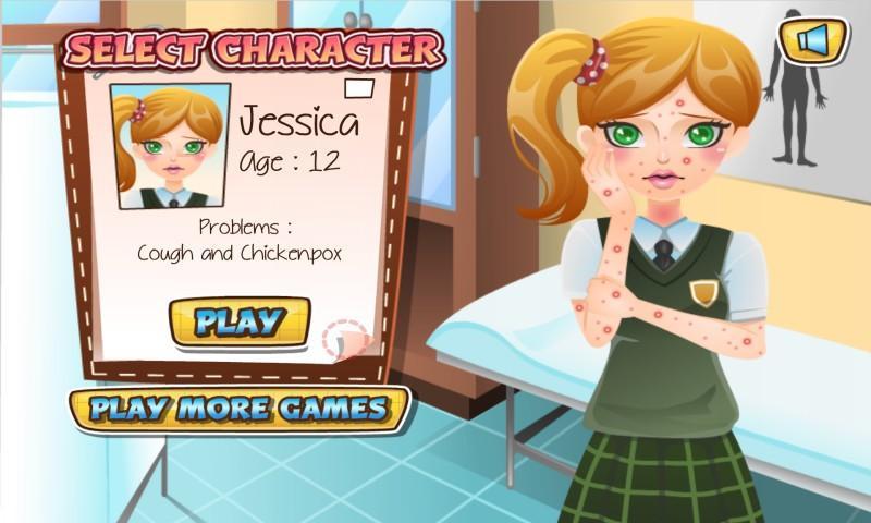 In the care kids game, your would be a nurse, your mission is help nurse and doctor treatment their skin problem.