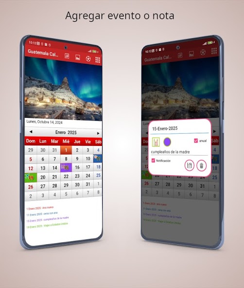 • Add events or notes with personalized icons and colors.
