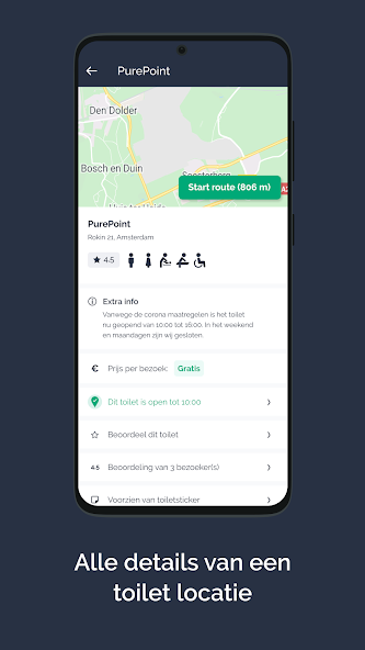 We have more than 300 partners (municipalities and companies). In this way we maintain contact with the toilet owner. The toilet information in our database is thus verified and therefore always accurate. By partners for HogeNood users.