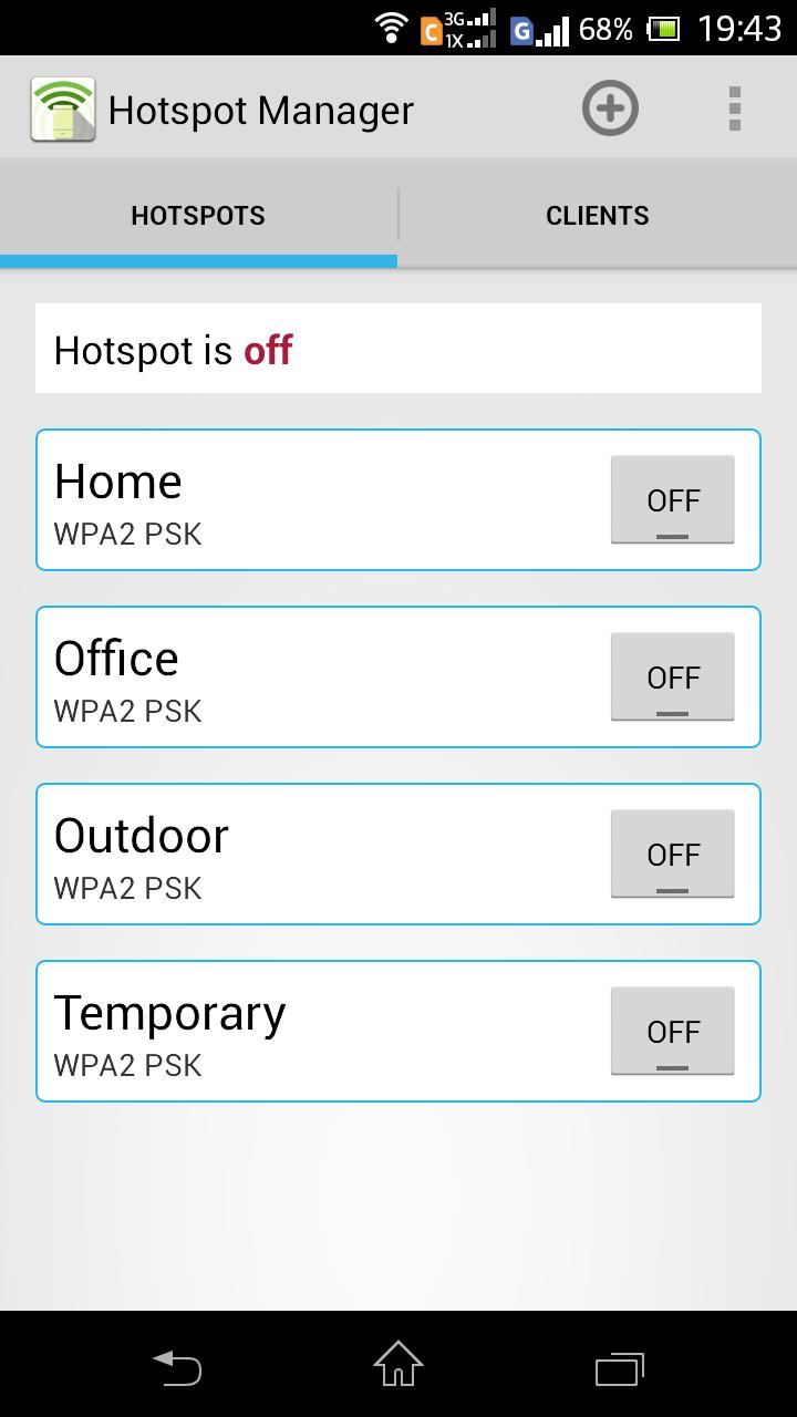 Hotspot Manager manages all WiFi hotspots you want to share with your family, friends and colleagues or to use in different places.