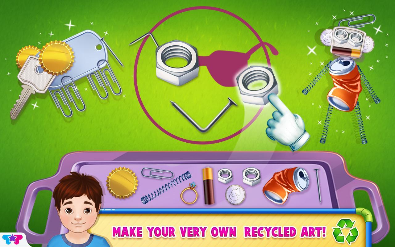 Bukan itu saja! Temukan kejutan tersembunyi dengan detektor logam kehidupan nyata! Setelah Anda mengumpulkan temuan Anda, saatnya untuk menjadi kreatif! Buat seni daur ulang Anda sendiri dengan semua jenis item acak! Buat musik dan mainkan di taman bermain musik dan temukan dunia game objek tersembunyi! Apa yang kamu tunggu? Ayo bersenang -senang!