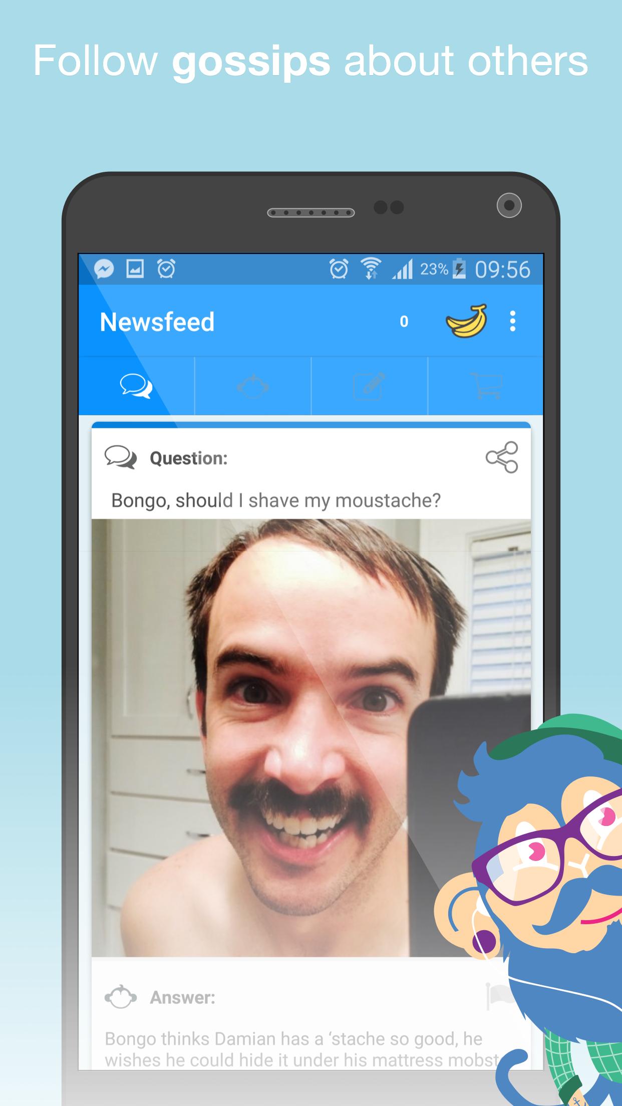 Kirimkan foto Anda ke Bongo dan langsung terima umpan balik. Monyet yang sangat cerdas ini telah menggali gosip pada orang selama lebih dari 8 tahun.