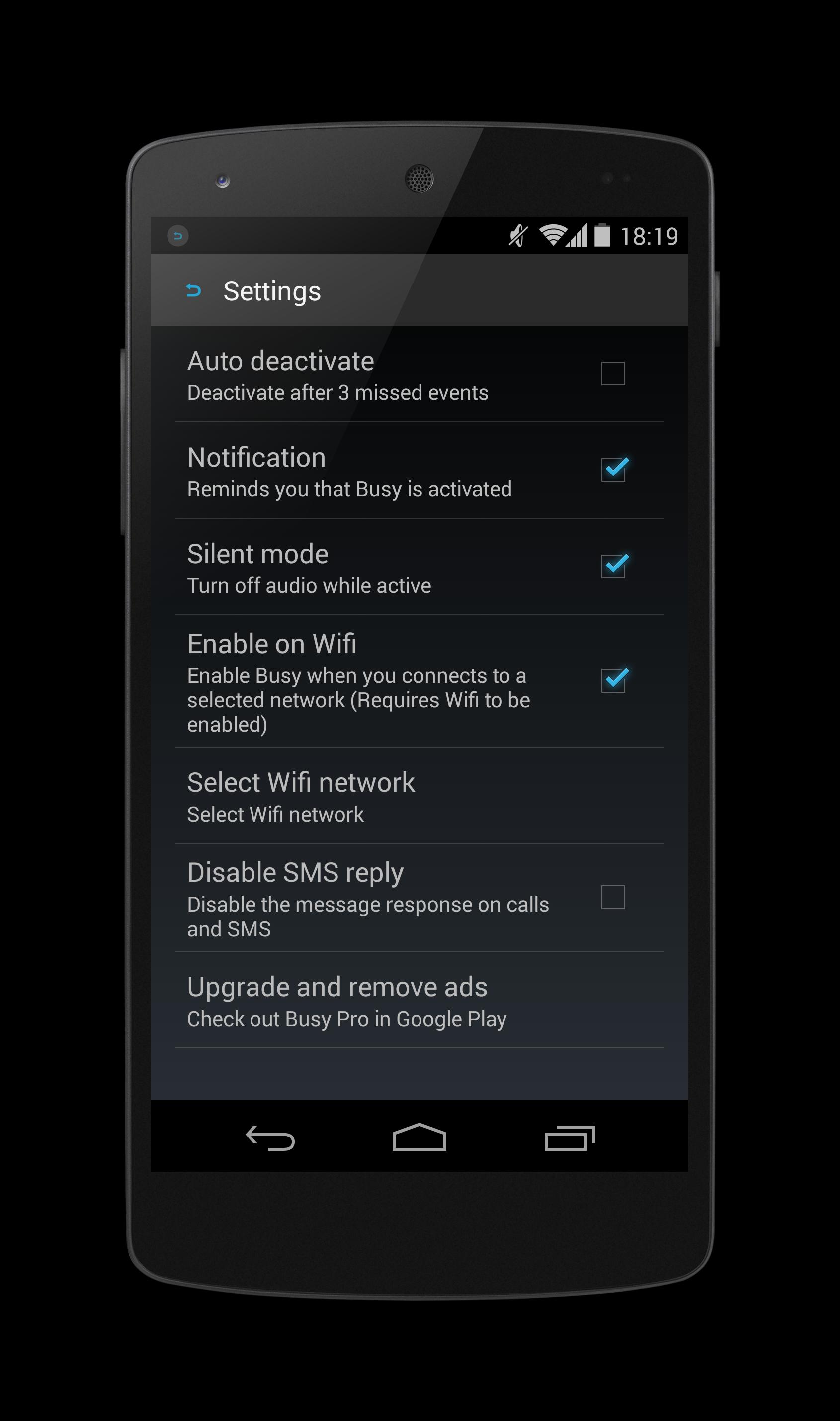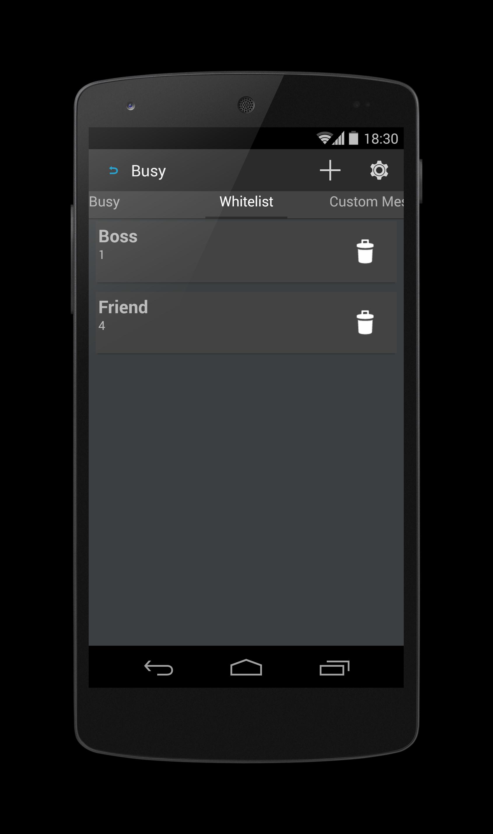 Dengan Busy Anda dapat membuat pesan kontak tertentu, yang akan mengirim pesan yang dibuat khusus untuk kontak yang dipilih. Anda juga dapat memilih kontak yang tidak akan menerima pesan sama sekali, jika Anda ingin itu. Oleh karena itu, Anda dapat dengan tenang mengabaikan panggilan dan teks yang masuk, karena Anda akan dapat memberi tahu siapa pun yang mencoba menghubungi Anda tentang situasi Anda. Dengan opsi untuk secara otomatis menonaktifkan Busy setelah beberapa panggilan atau teks, Anda tidak perlu khawatir kehilangan untuk dihubungi selama keadaan darurat.