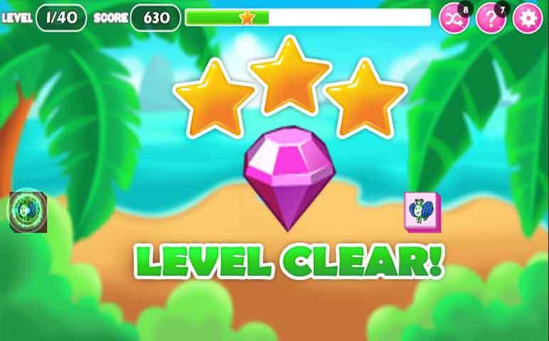 1. Lepaskan 2 ikon hewan atau buah dari jenis yang sama yang dapat dihubungkan dalam 3 baris