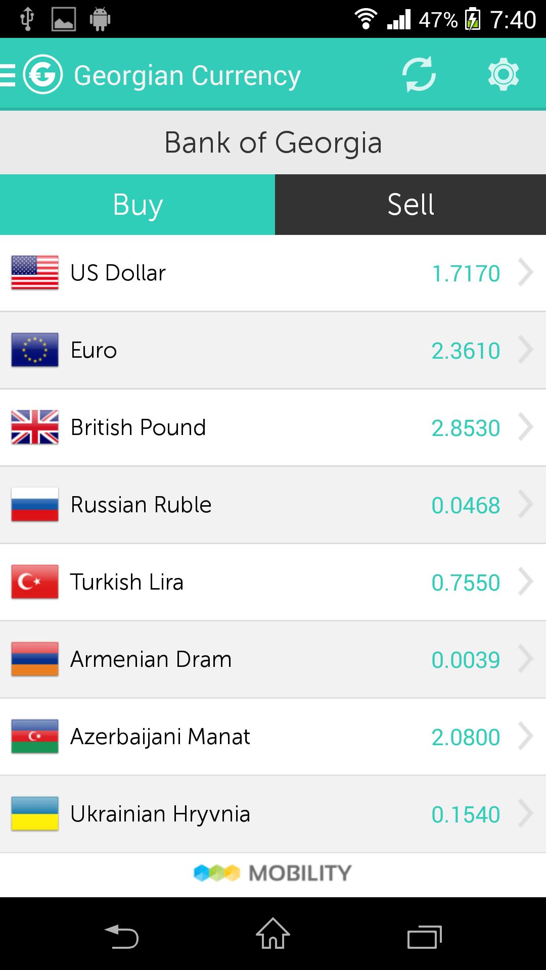 Mata uang: Gel, USD, EUR, RUB, GBP, coba dll.