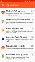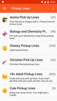 Temukan beberapa Pickup Lines paling lucu, paling manis, paling sleaziest, nerdery dan paling aneh. Kami telah menyusun sejumlah besar baris yang dapat membantu Anda mengambil dan melibatkan gadis percakapan dengan Pickup Lines ini. Pesan menggoda untuk kesenangan atau godaan santai. Pesan nakal terbaik untuk diusulkan atau digoda.