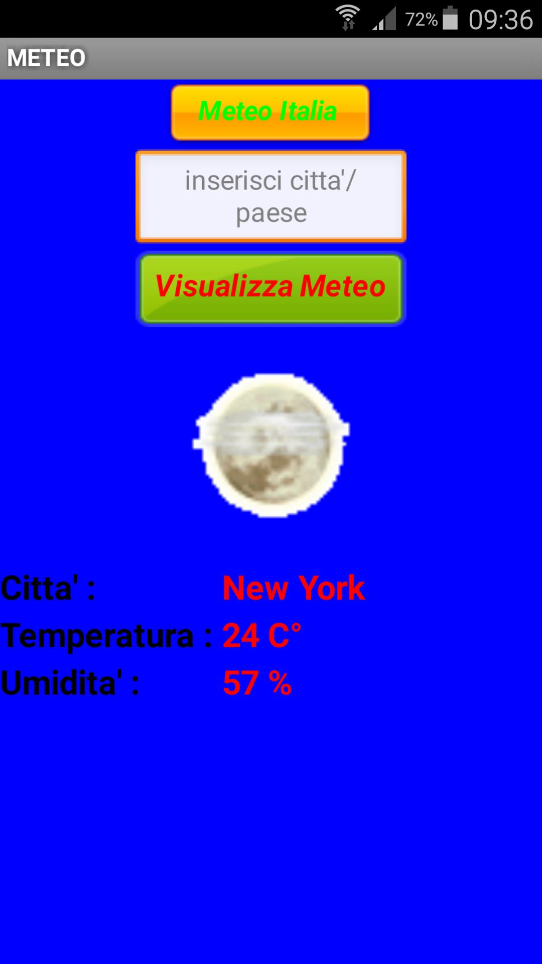 Previsioni Meteo adalah aplikasi cuaca sederhana yang akan memungkinkan Anda untuk melihat perkiraan hari ini dan 4 hari ke depan untuk setiap kota dan negara di dunia, sedikit grafik akan muncul dan Anda akan mengetahui suhu dan kelembaban tempat minat Anda secara real time. Cukup tulis nama kota dan desa dan klik tombol penyegaran.