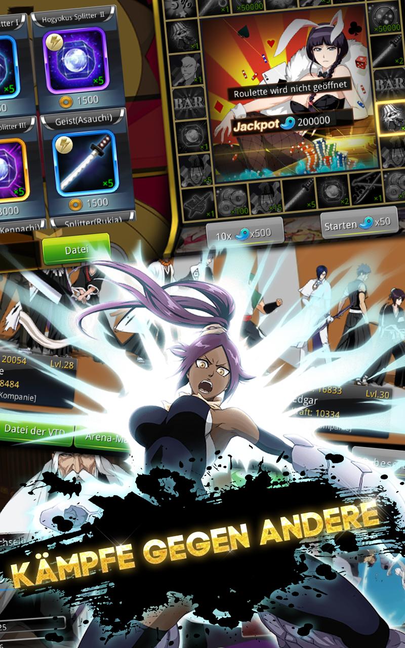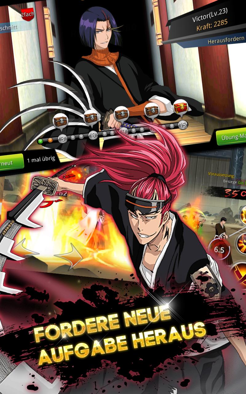 Bergabunglah dengan harian atau minggu dan bertarung melawan pemain lain dari seluruh dunia! Miring mereka untuk membuat tim shinigami Anda menjadi terkuat di dunia! "
