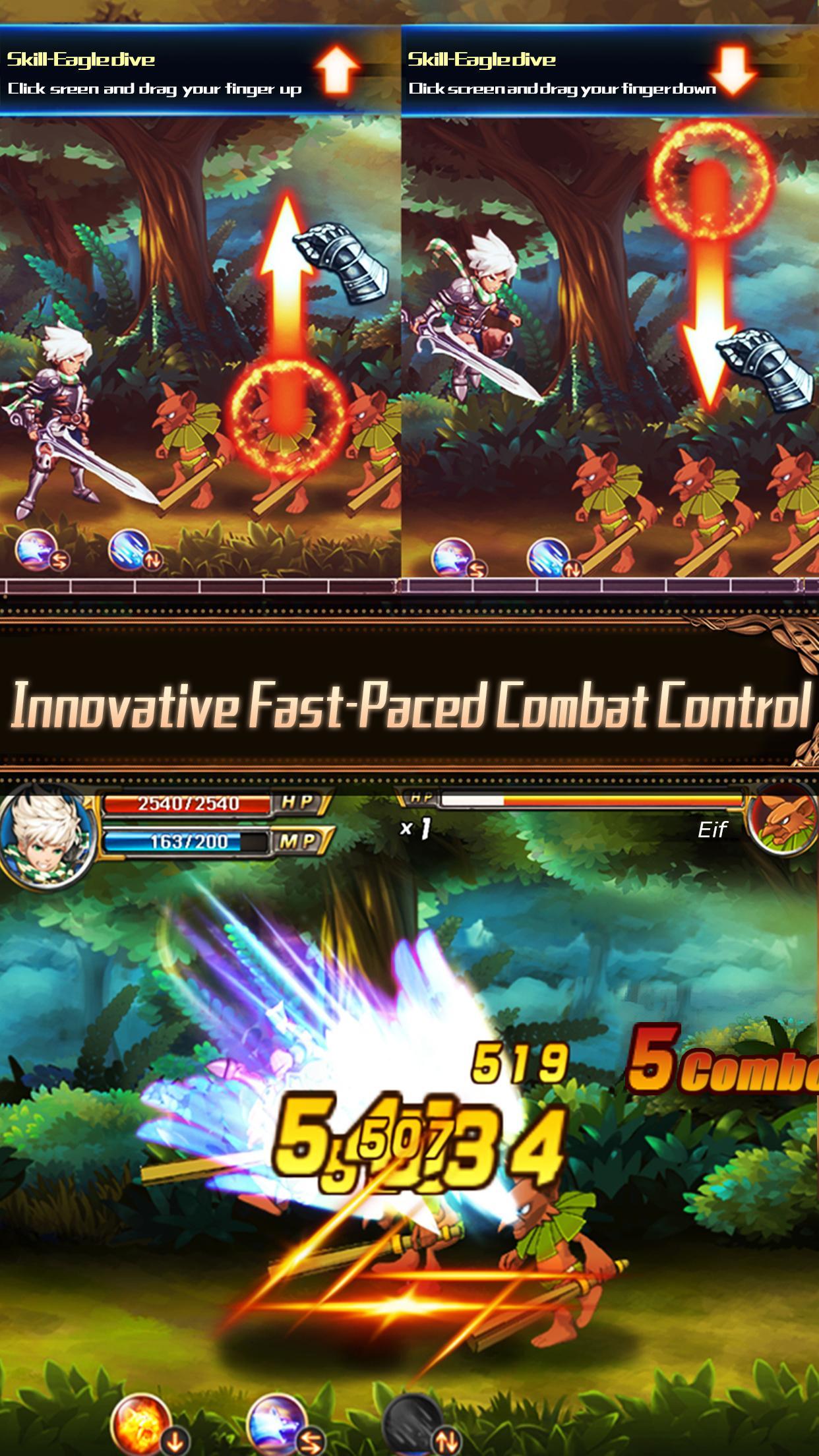 Kontrol tap dan slide layar yang ditampilkan memberikan gerakan dan tindakan karakter yang sangat responsif dan variabel.