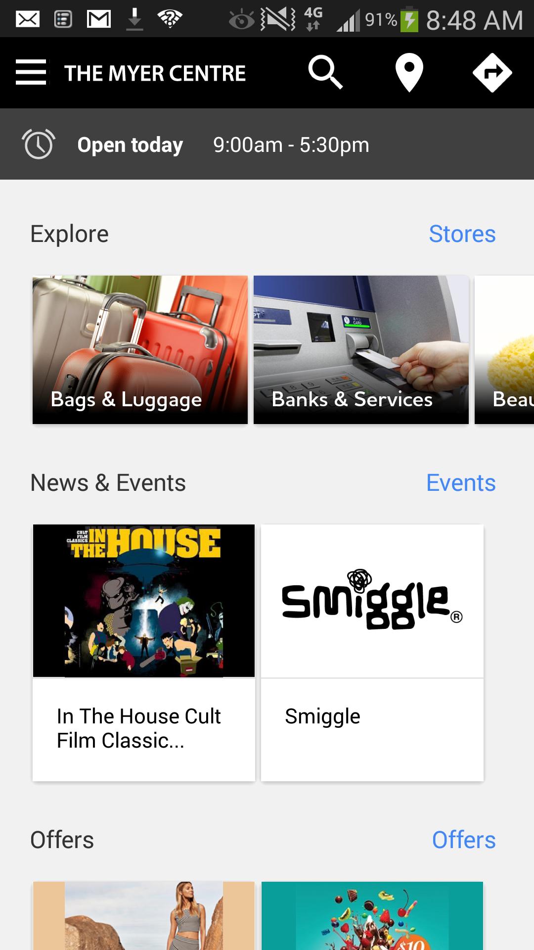 Aplikasi seluler MCB menempatkan Myer Center Brisbane ke telapak tangan Anda.
