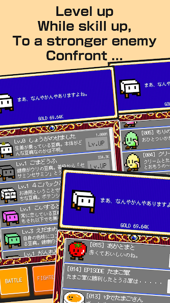 Melawan musuh, menang, mendapatkan emas dan memperkuat tahu, bertarung dengan musuh -musuh baru yang kuat.
