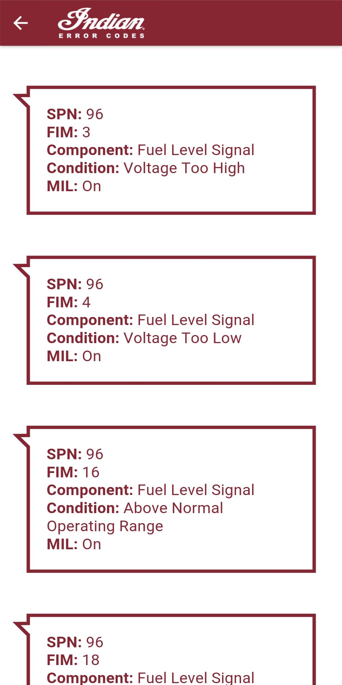 Indian Diagnostics will help you understand your check engine codes on your Indian Motorcycle. Quickly and easily search any check engine code and see what the fault is. Database is internal so no internet connection/data is needed for code lookup. Intended for 2014 and up model years. Works with all Indian models.