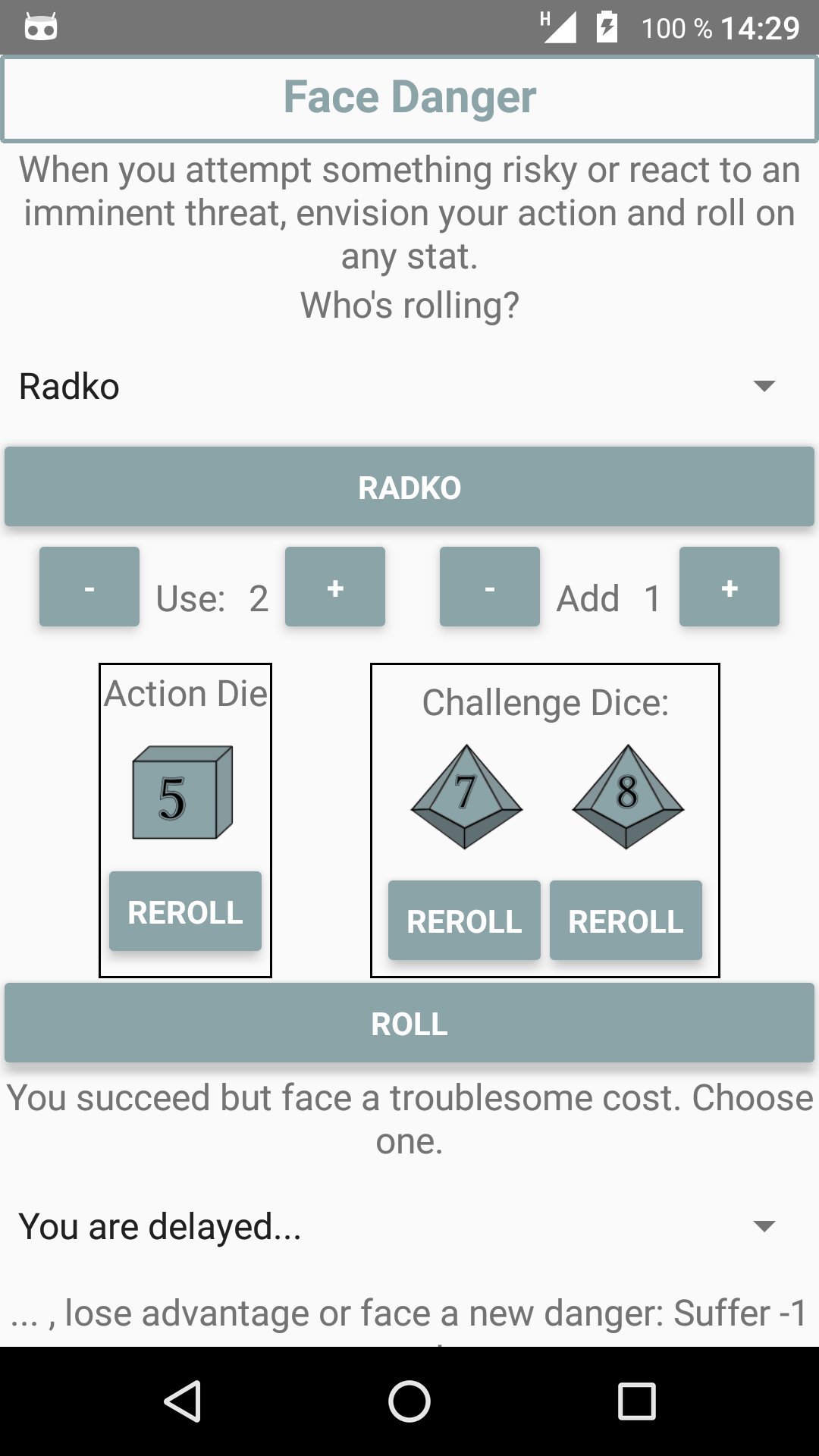 Use it to manage your characters, dice rolls, oracles, assets etc.