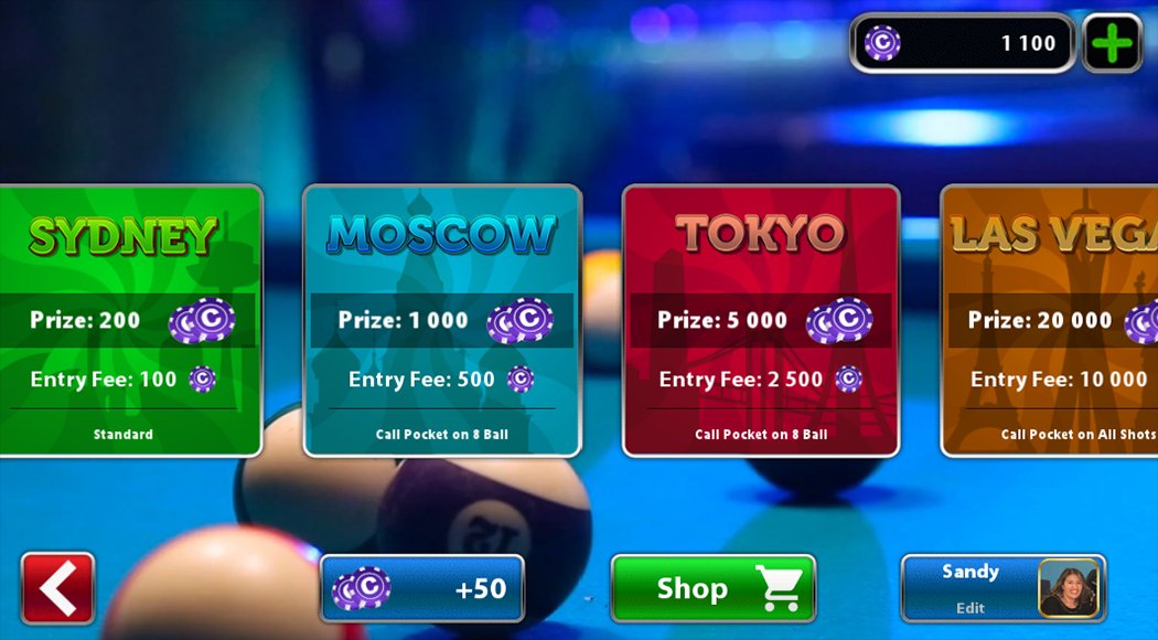 オンラインでプレイしてコインやトロフィーを獲得し、キューをカスタマイズして 8 つの異なる部屋でプレイすることができます。