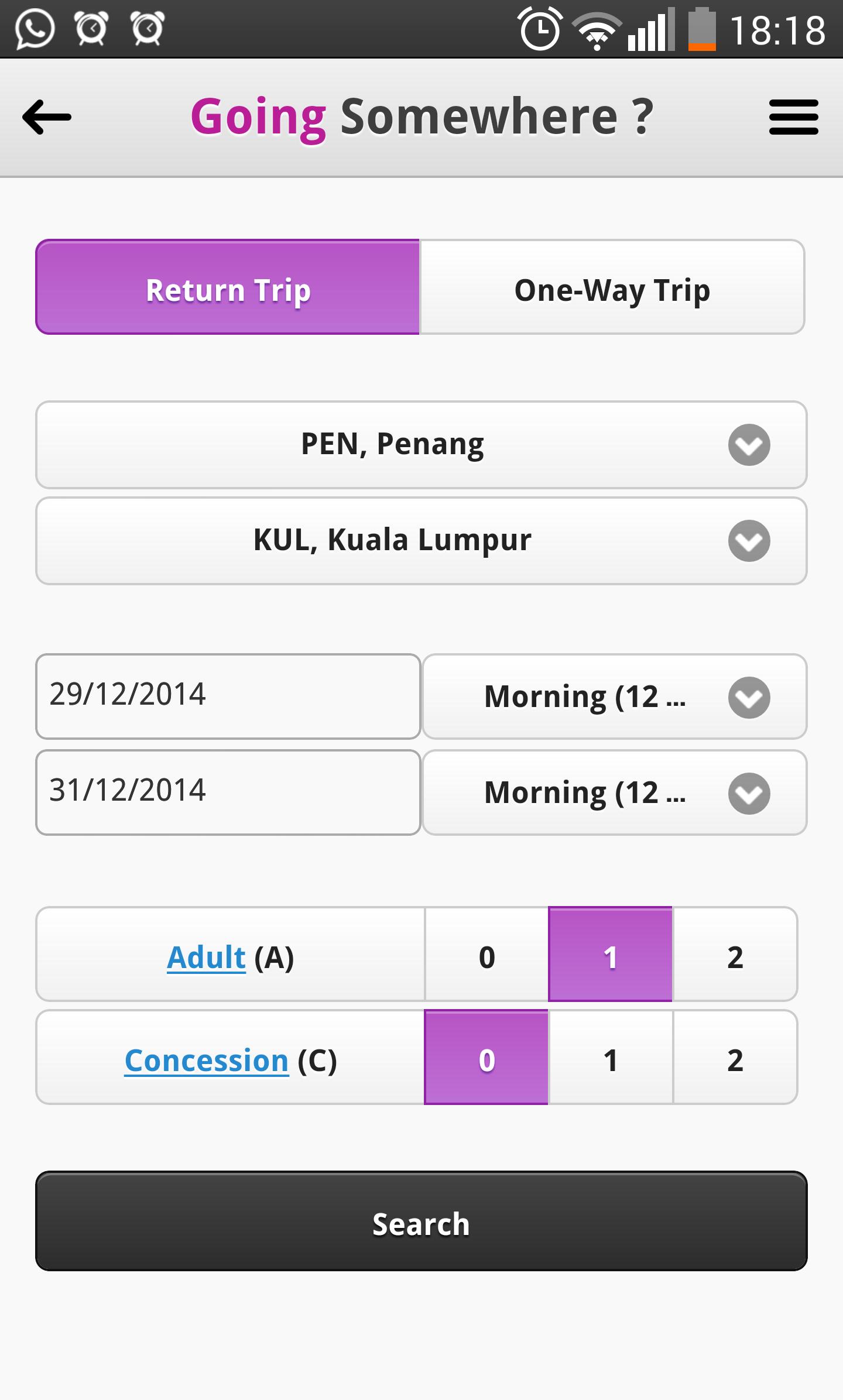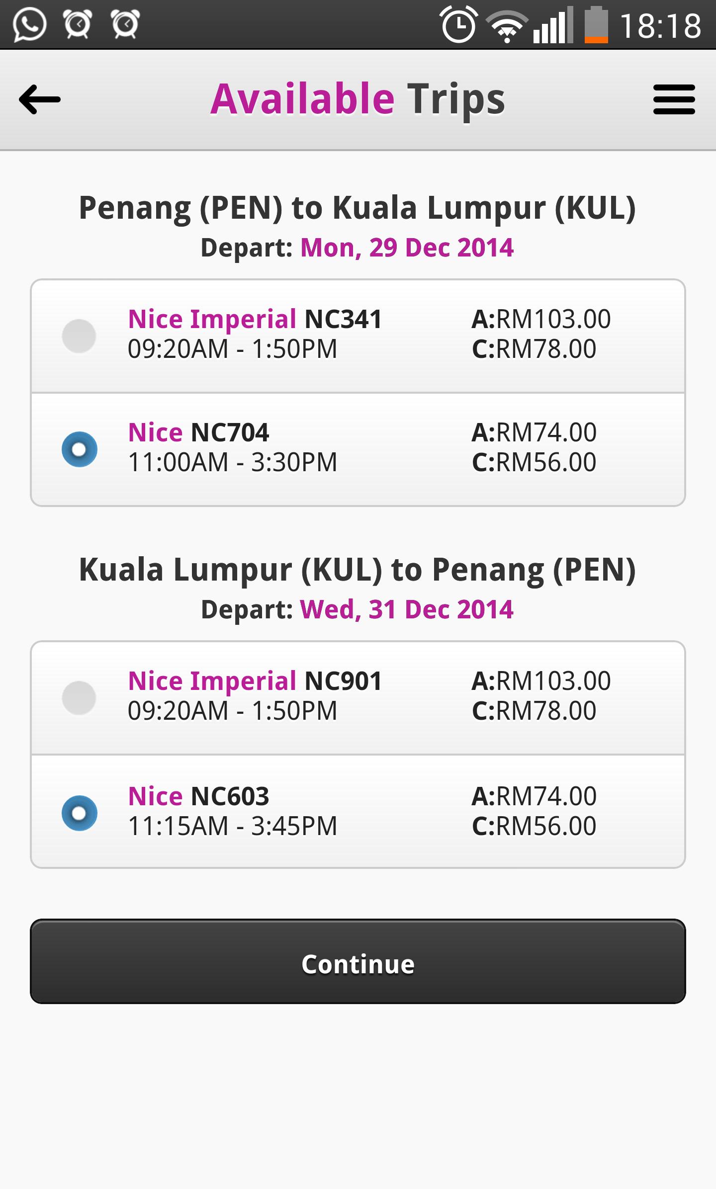 外出先で旅行を計画してください。 BusTicket4U Mobileアプリを使用して、Transnational Purchase、Plusliner&Nice Executive Coach Expressバスのチケットへのアクセスを提供しています。マレーシア半島とシンガポールには、230以上の目的地があります。興味深い場所のいくつかは、クアラルンプール、プトラジャヤ、ペナン、イポー、メラカ、ジョホールバル、コタバルです。エクスプレスバスのチケットの予約、購入、支払いは、いつでもどこからでも簡単に、簡単で手間をかけないようにすることができます。
