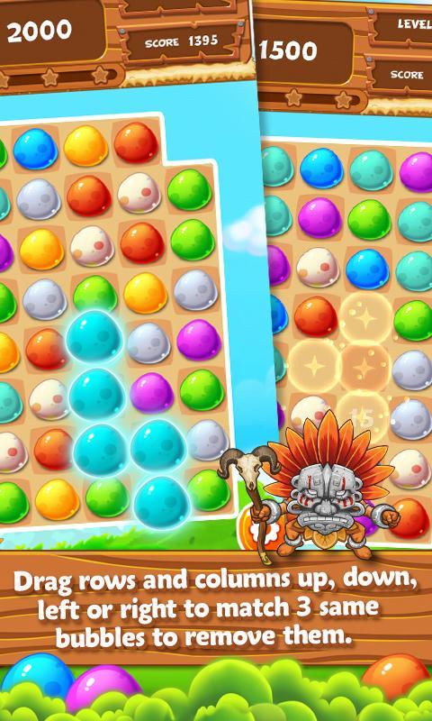 列を上下にドラッグするか、左右に左右にドラッグして、3つ以上のドラゴンの泡を一致させてクリアします。