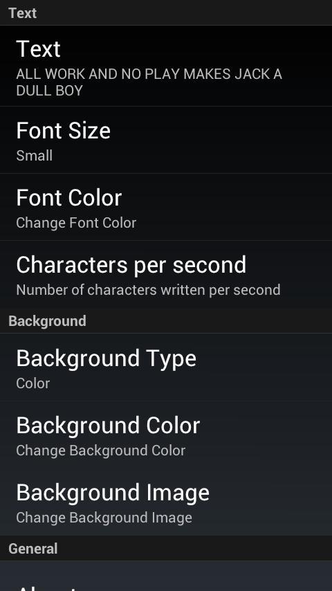 独自のテキストを書いて、背景画像または色を選択するだけです。設定では、フォントのサイズと色、スクロール速度をカスタマイズすることもできます。