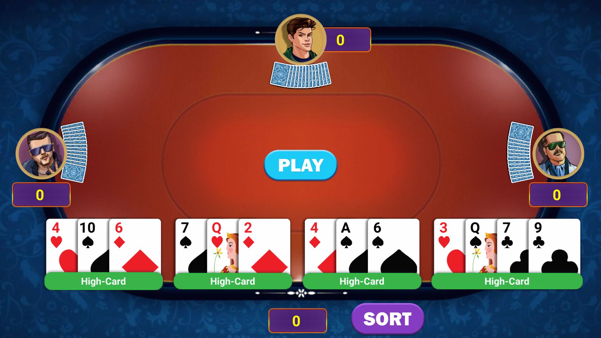各ラウンドの開始時に、すべてのプレイヤーは午前5時にカードを取得します。カードを受け取った後、あなたの仕事は4枚のカードで4つの手を作ることです。