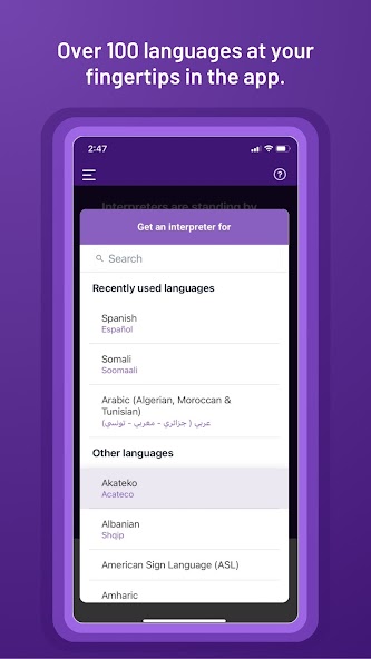 Jeenieプラットフォームは、数秒でライブの資格のある通訳と接続します。