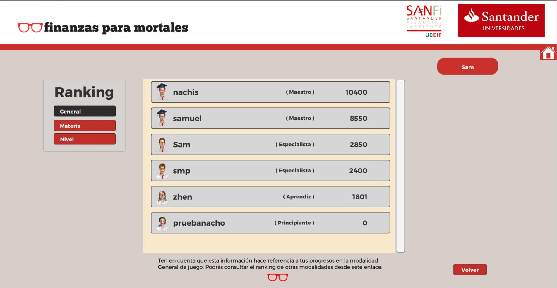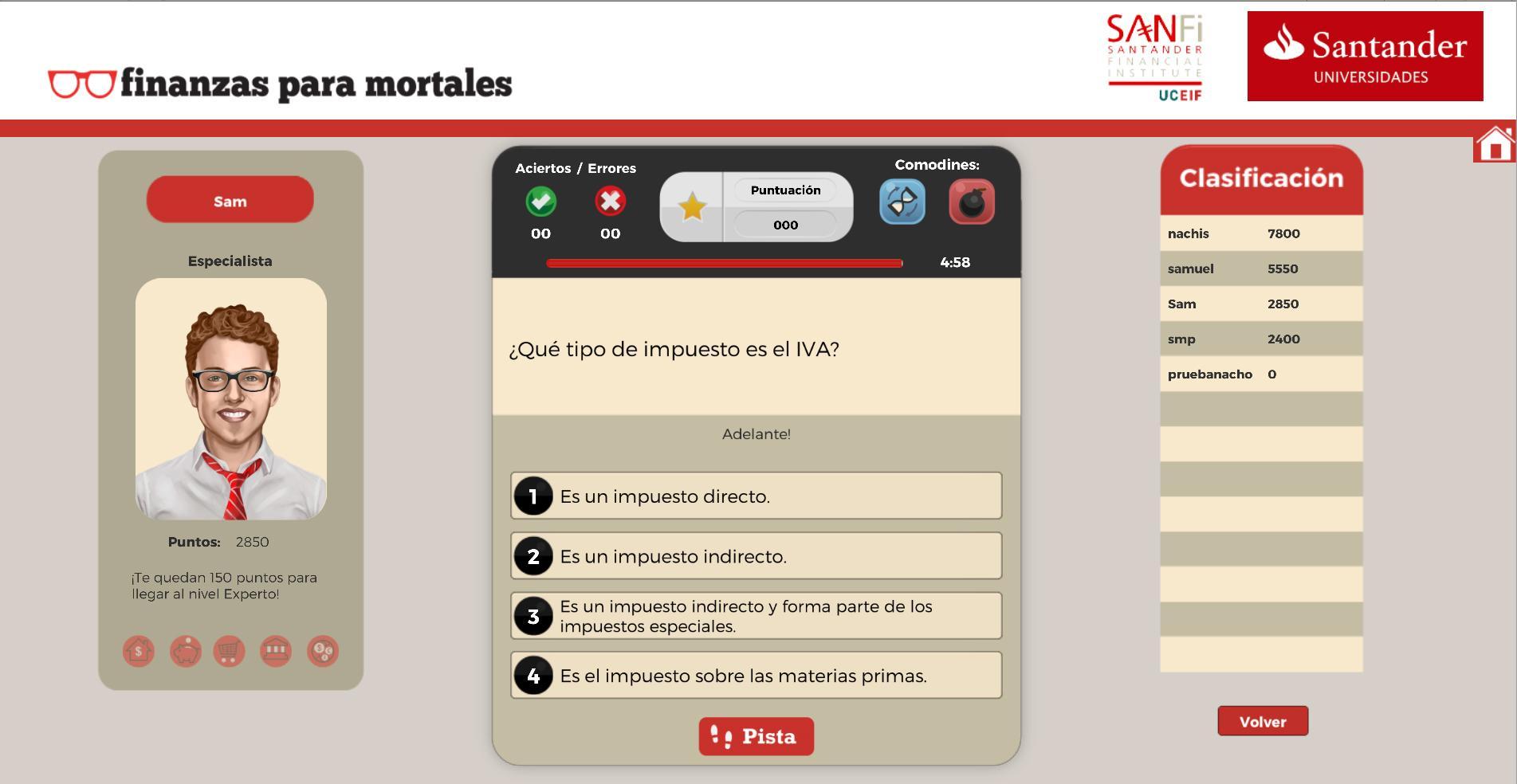Challenge FXMは、Santander Financial Institute(SANFI)によって作成された金融教育に関する質問と回答のゲームであり、UCEIF Foundationが推進し、経済学と金融に関する知識をテストする必要があります。それはあなたがあなたが最もバッジを取得し、ポイントを追加してゲームを完了することを知っている人であることを示しています。