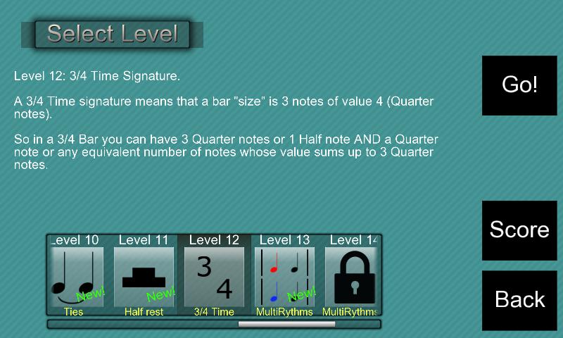 楽器を演奏することを学び、音楽を読む方法は、多くの練習を必要とする難しい作業です。しかし、練習は退屈である必要はありません。 Rhythm Teacherそれはあなたの音楽教育に最適なツールです。このリズムゲームは、楽しく簡単な方法で音楽を読む方法を教えてくれます。リズムトレーニングに最適です!あらゆるレベルで少し練習すると、視覚の読みが思ったよりも簡単であることがわかります。それはあなたのデバイスに音楽学校を持っているようなものです。