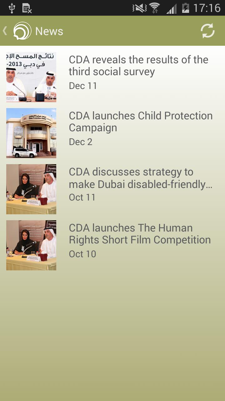 ニュースサービス:このアプリは、CDAからの新しいサービスに関するニュースと、地元の調査の結果をもたらします。